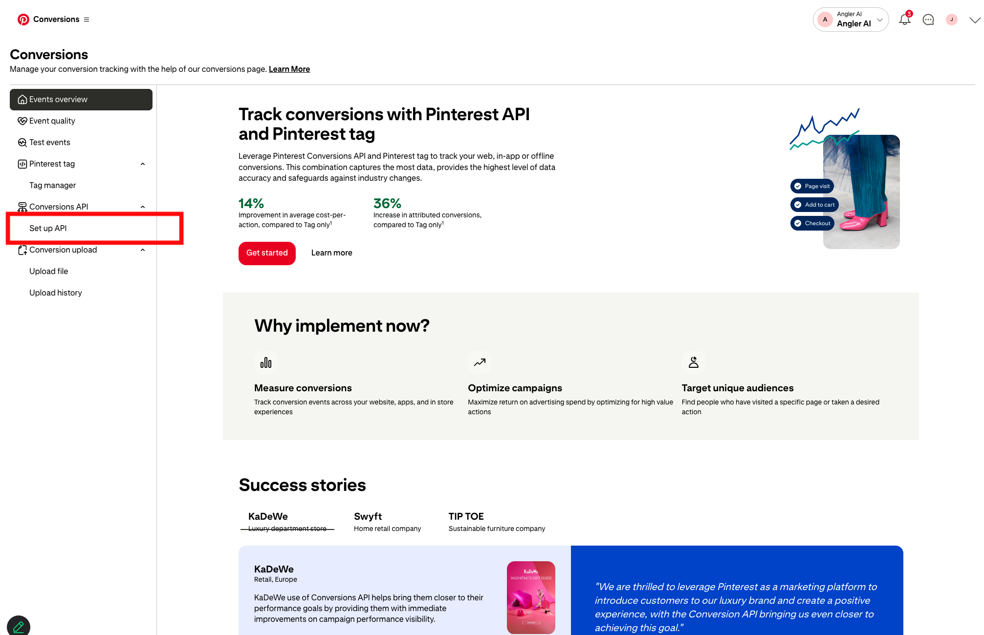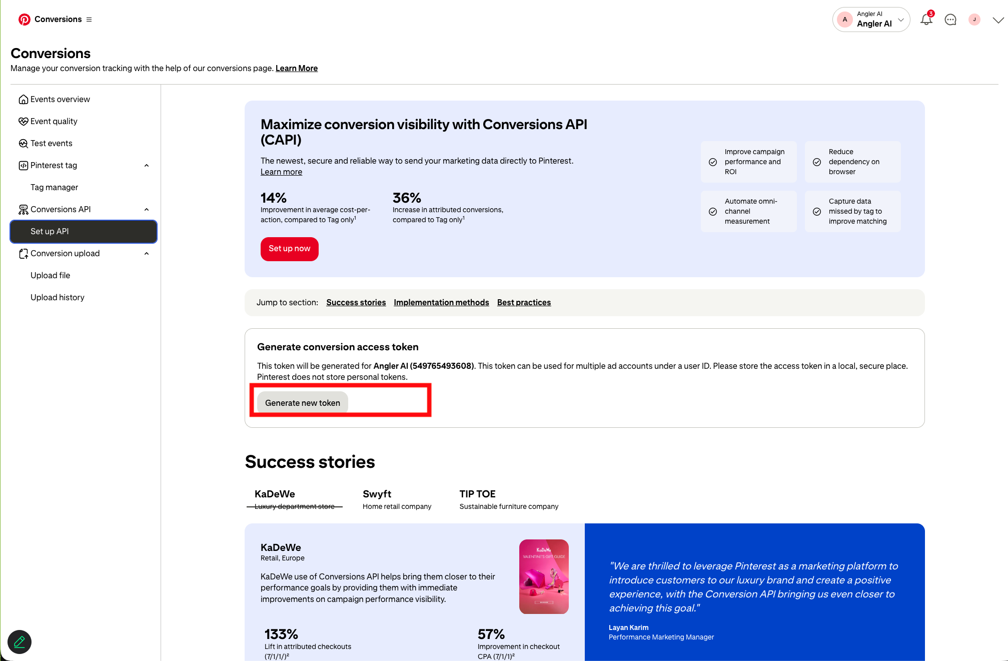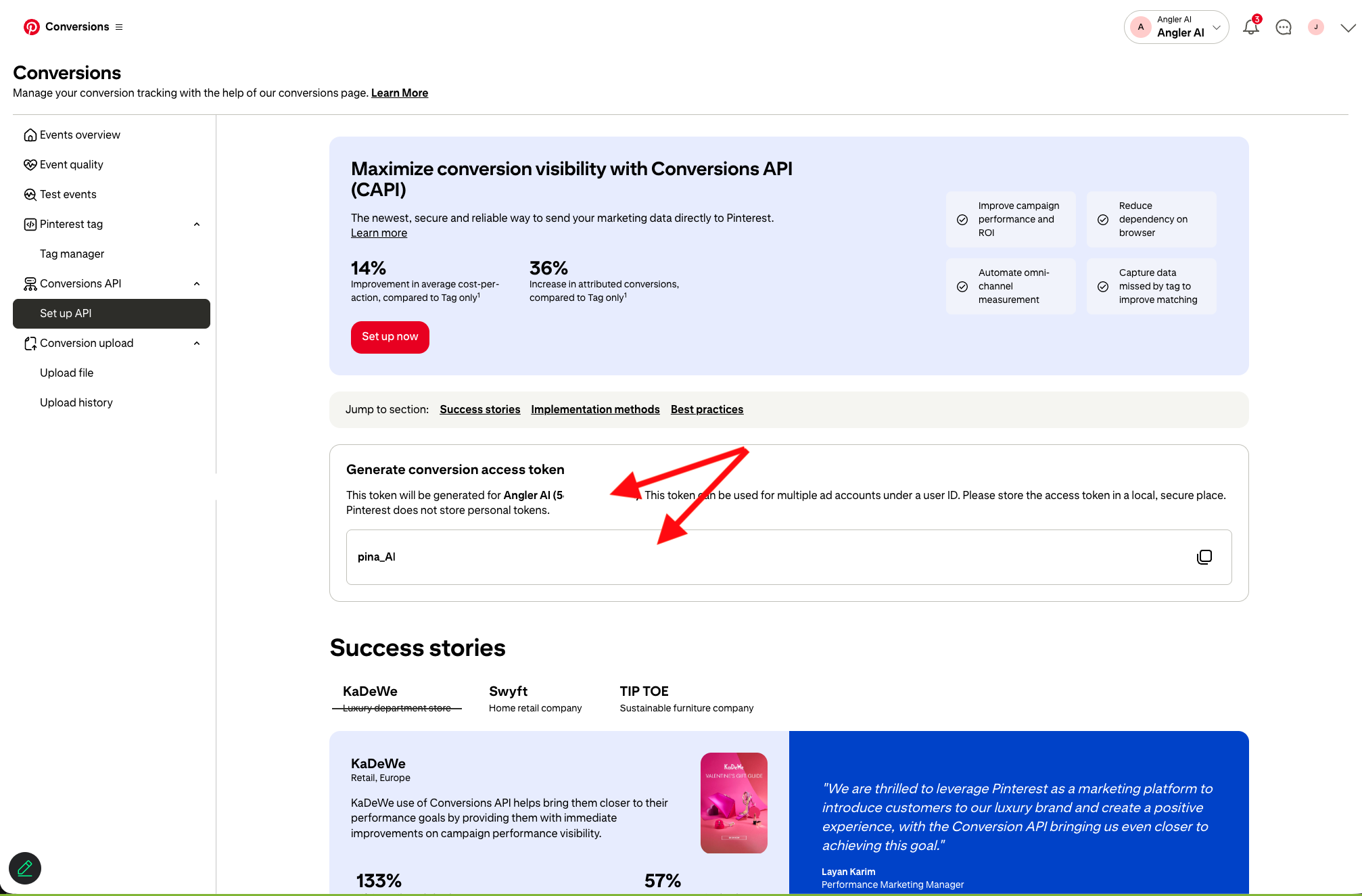 Manual steps for enabling Angler to send Predictive CAPI events to Pinterest