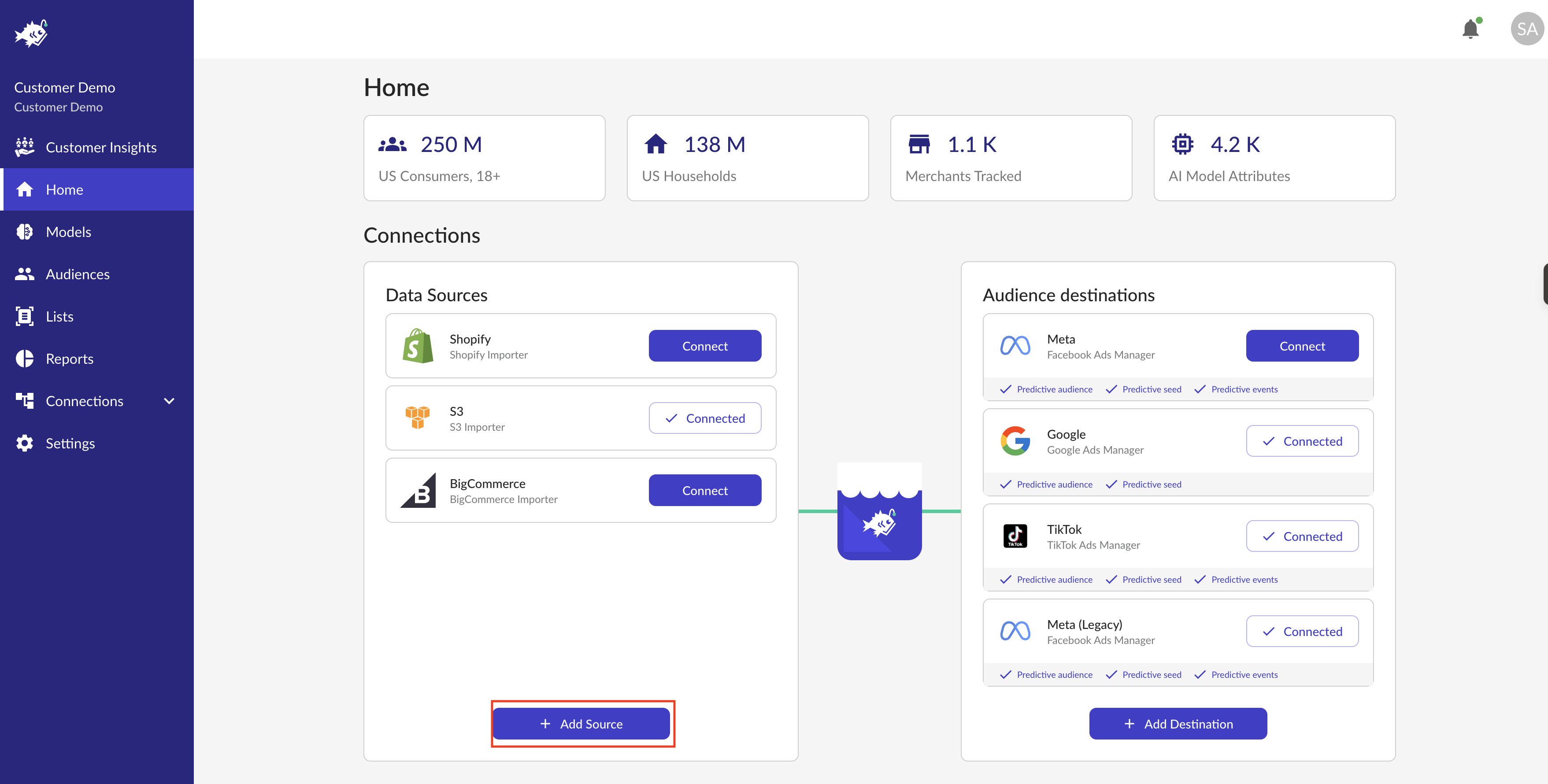 Log into your Angler AI web app and click on + Add Source